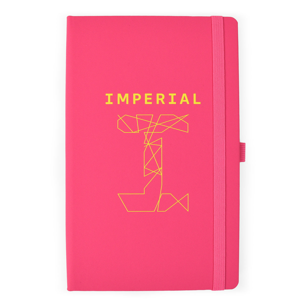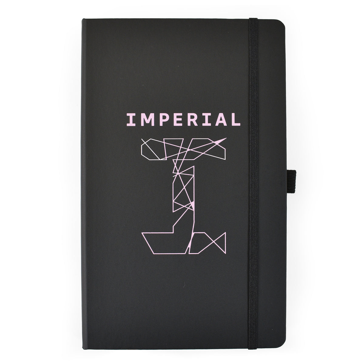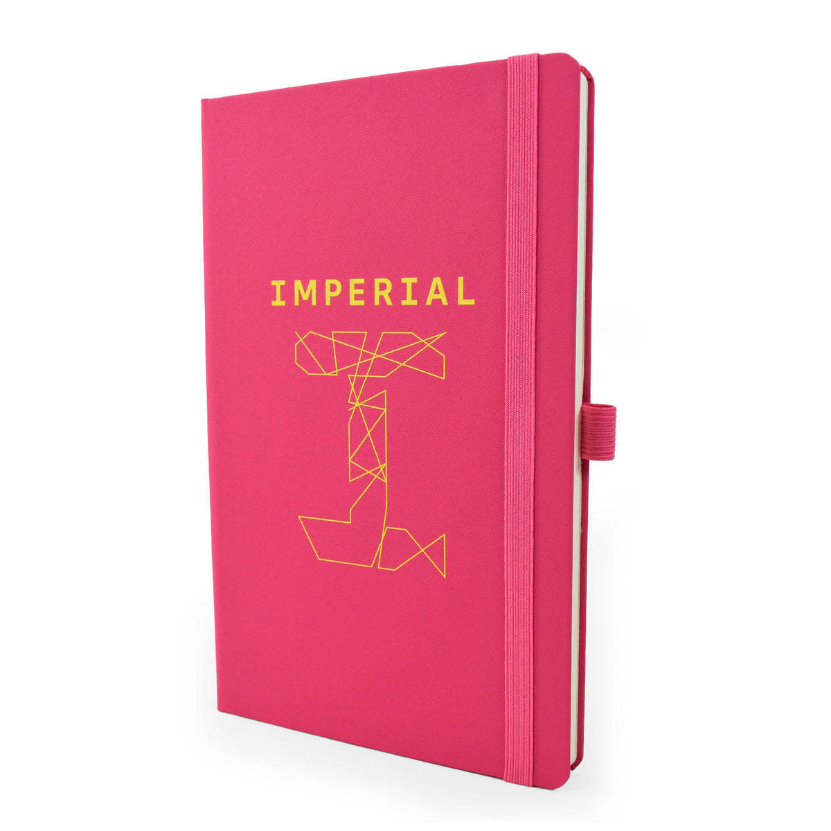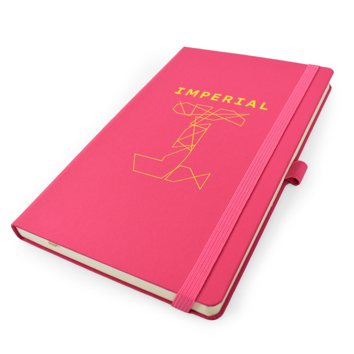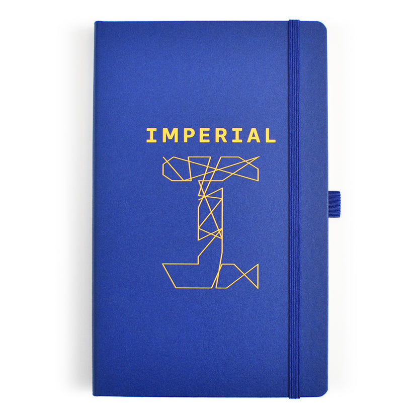 A5 lined notebook featuring FSC® certified ivory paper, rounded corners, vertical elastic band, pen loop, ribbon marker, and internal document pocket.